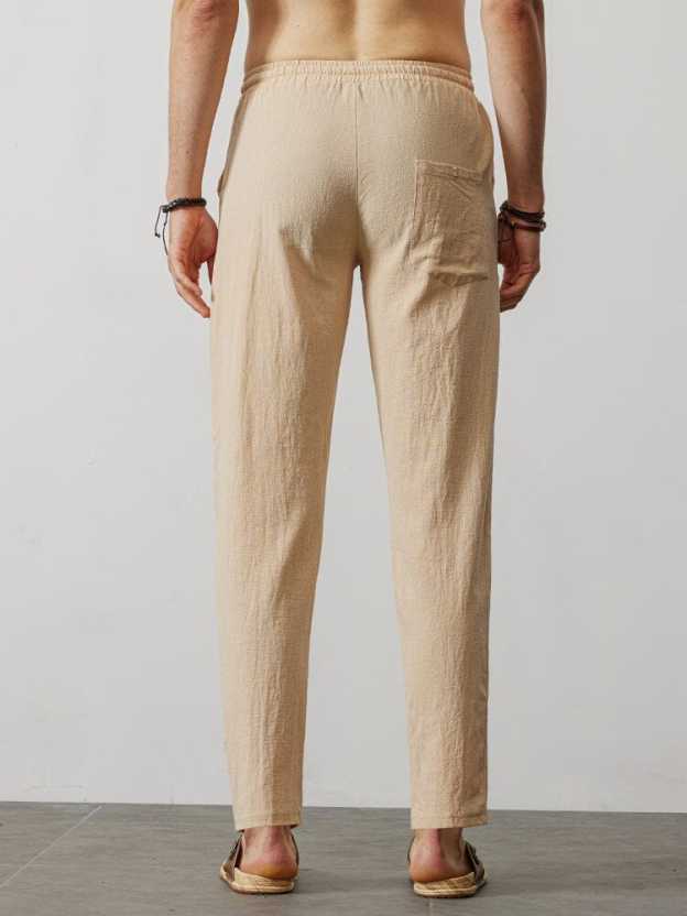 Casual Loose Solid Color Lacing Elastic Waist Pants