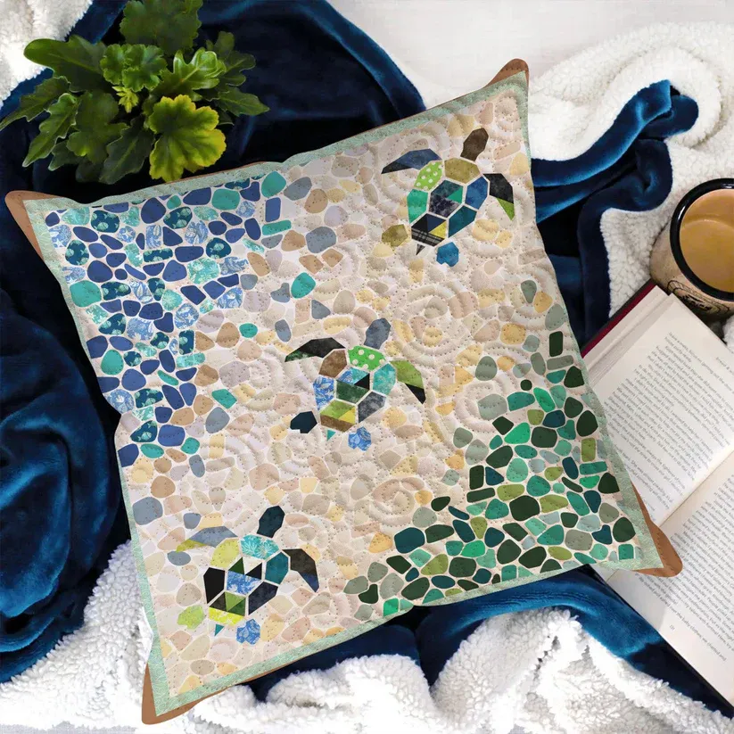 Mosaic Sea Turtle Quilted Pillow