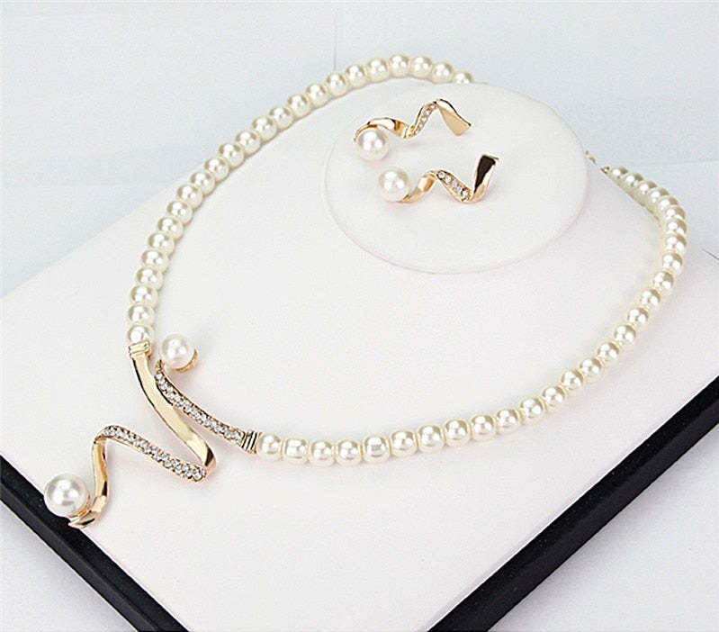 Natural Pearl Necklace + Earrings Set