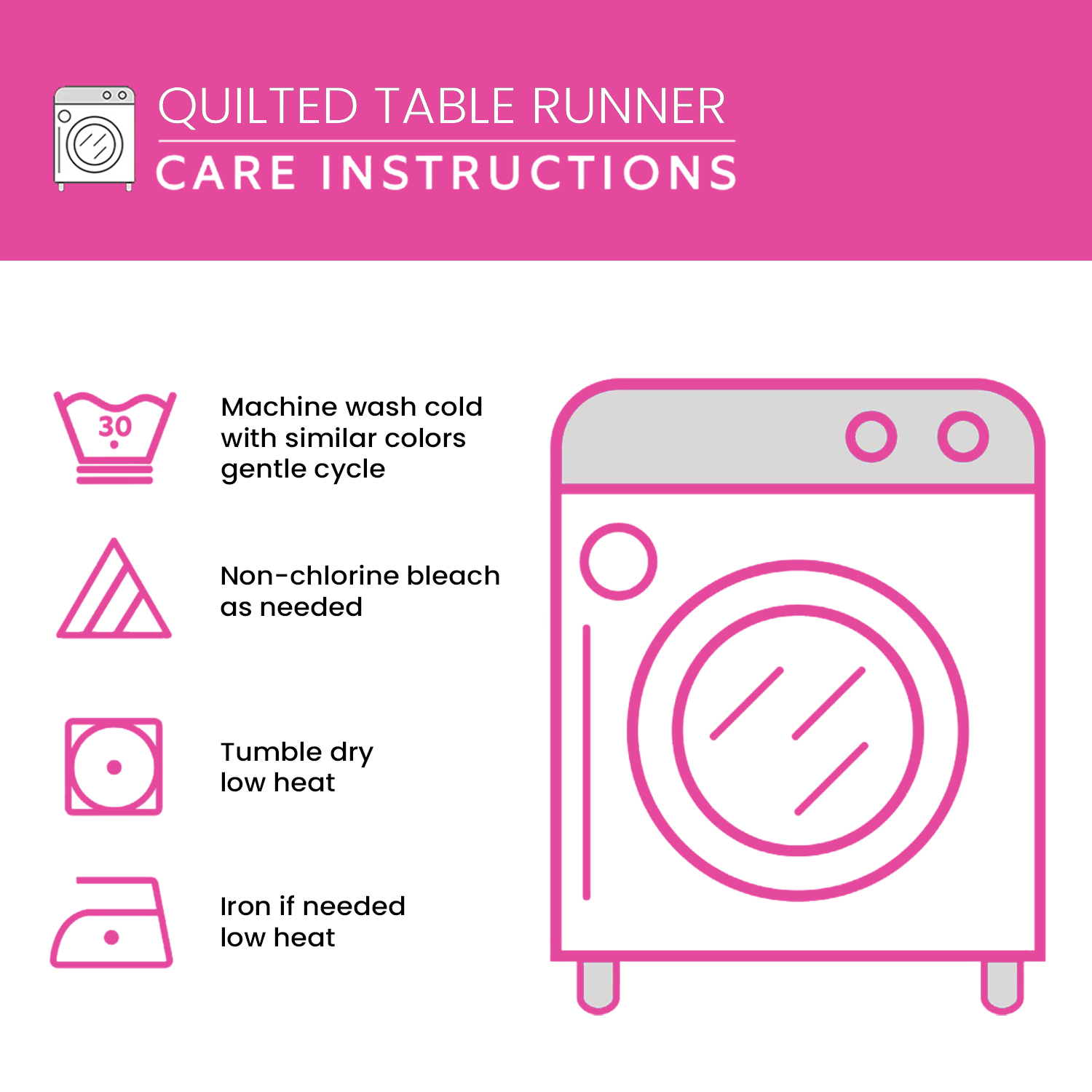 • Effortless Upkeep: Life's complicated enough! That's why our table runner is machine washable and suitable for tumble drying, simplifying your cleaning routine.